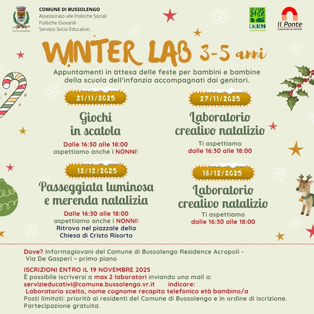 Iscrizioni entro il 19 novembre mandando una mail all'indirizzo servizieducativi@comune.bussolengo.vr.it